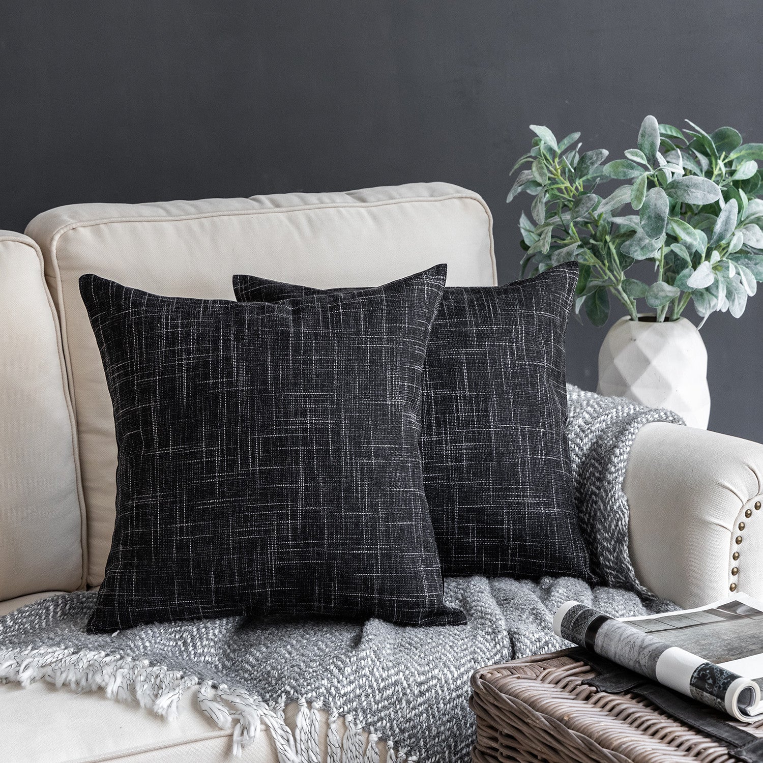Soft Textured Linen Burlap Series Decorative Throw Pillow Covers, 18" x 18", 1 Pack Of 2